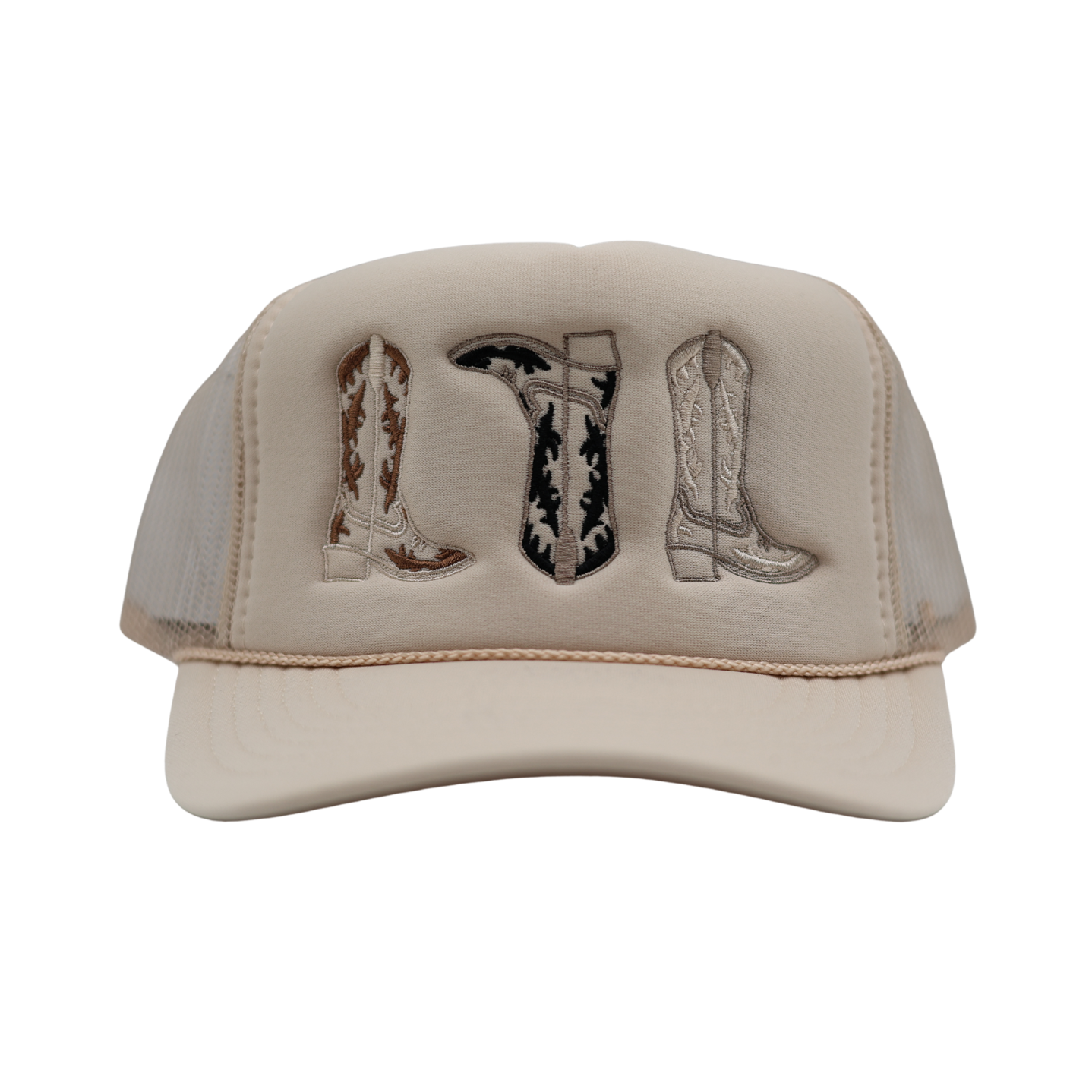 The Boots & Roots tan trucker hat celebrates the country girls who know their worth ... grounded in their roots, bold in their boots.